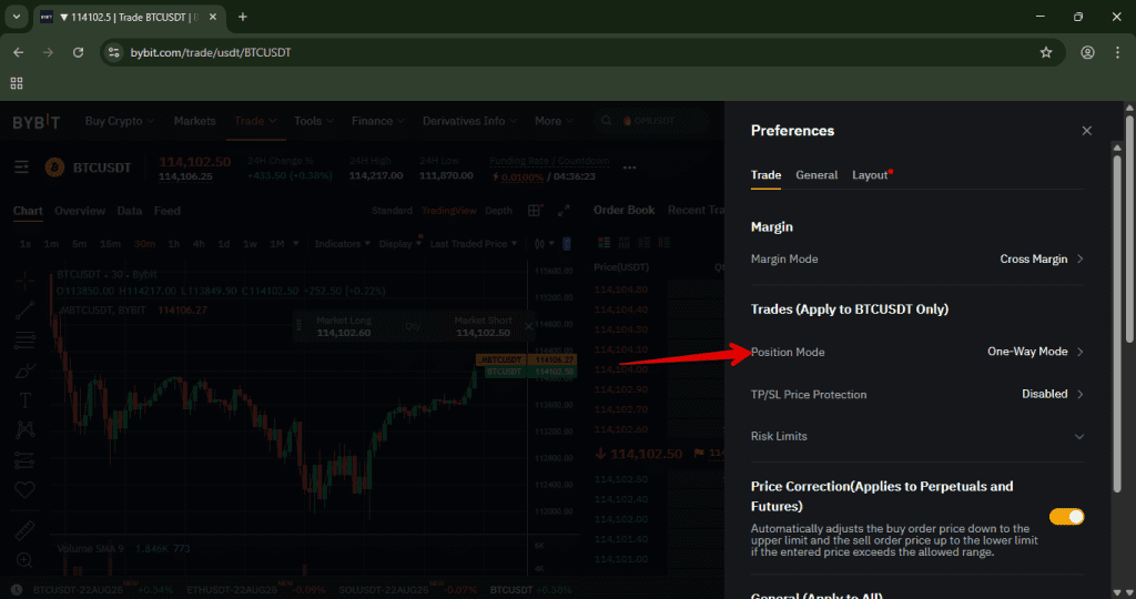 5. Switch to “Hedge Mode” if it’s currently set to “One-Way Mode.”