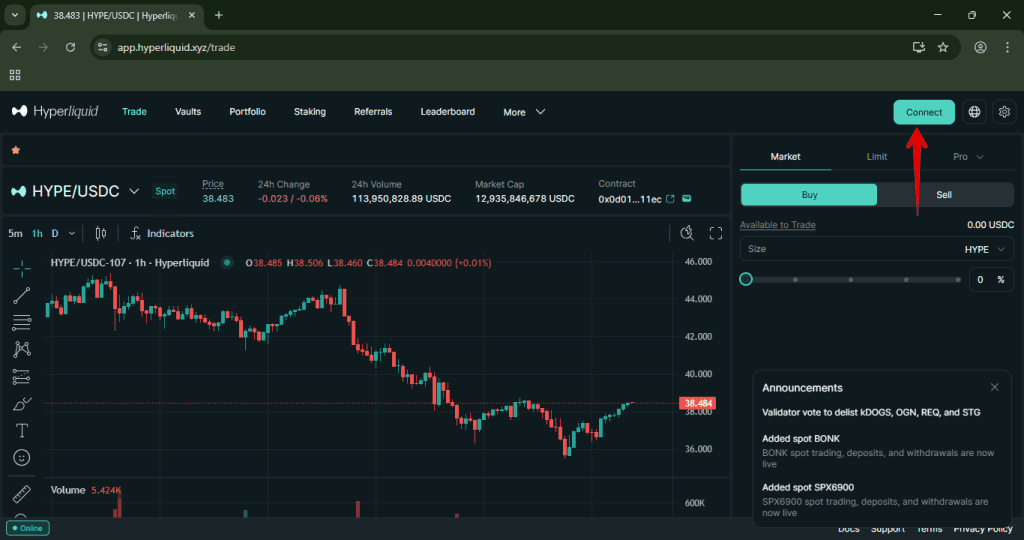 1. Go to Hyperliquid Website and click on Connect.
