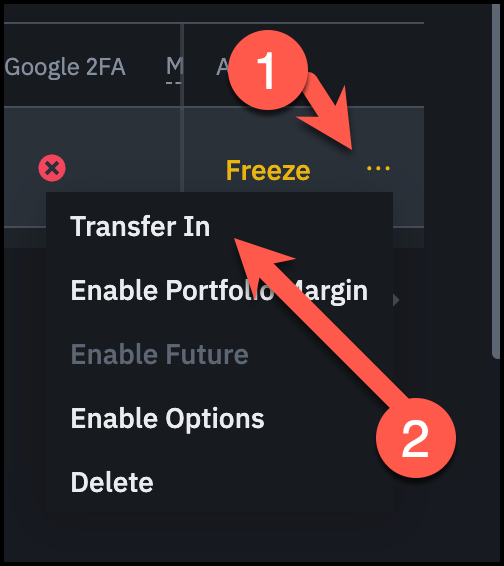 Click: Transfer In Beside For Your Subaccount